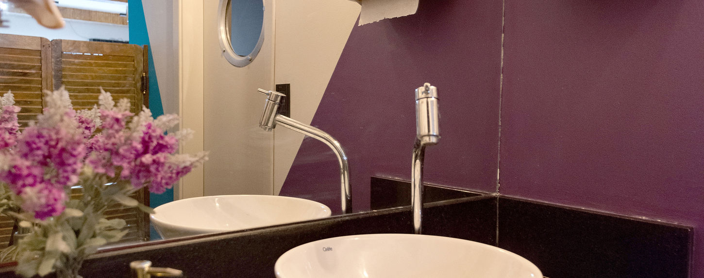 Projetamos um espaço aconchegante e acolhedor para receber os consumidores da lanchonete, com tons que conversam tanto com o principal produto vendido, como com a marca.